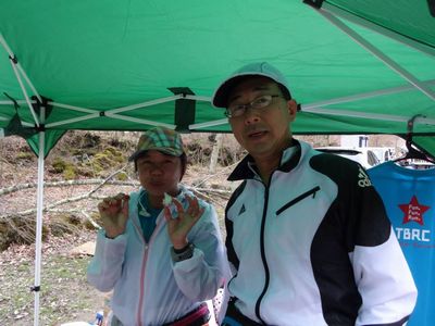 再び、妻のラン友さんたちの私設エイドで腰を下ろして、オニギリなどをいただいて、元気パワーを充電!