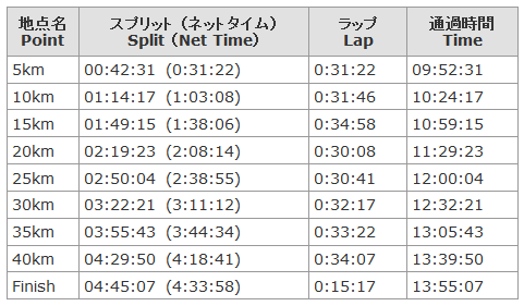 トイレタイムのロスを差し引けば、4時間30分を切っていたことになります。