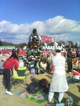 昭和記念公園の「みんなの原っぱ」が大会会場となっていて、さすがは“クリスマスラン”というだけあって、クリスマスツリーあり、サンタクロースありで、とっても楽しい雰囲気のアットホームな大会でした。