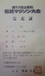 第17回上里町乾武マラソン大会 完走記平成20年2月17日 (日快晴・強風・とっても寒い)