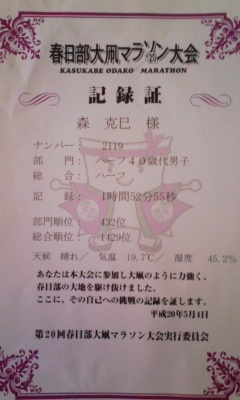 第20回春日部大凧マラソン 完走記 平成20年5月4日(日)くもり 気温20度