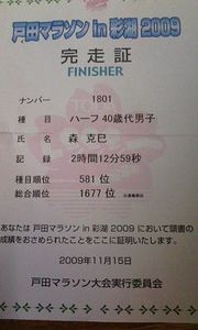 戸田マラソンin彩湖2009 完走記 平成21年11月15日(日)