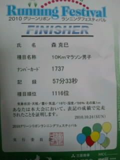 グリーンリボン・ランニングフェスティバル 完走記 平成22年10月24日(日)