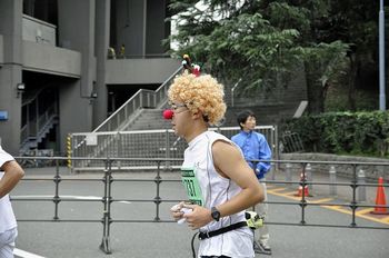 1周目は、グラウンドを1周半してから、競技場の外に出て行きました。
