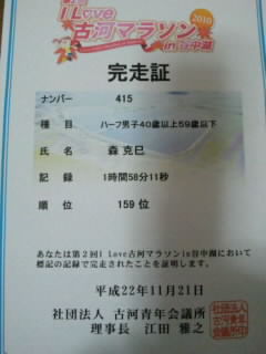 古河マラソン 完走記 平成22年11月21日(日) 天候:快晴 気温16〜7度 微風