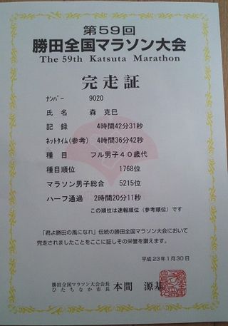 勝田全国マラソン 完走記 平成23年1月30日(日) 天候:晴れのち曇り 最高気温7度