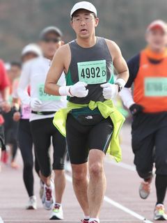 スタートから30キロくらいまでキロ6分30秒で刻み、後半、調子が良ければキロ6分まで上げていく。