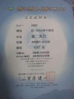 つくばマラソン2011 完走記 平成23年11月27日(日) 気温:10度〜15度 天気:くもり
